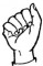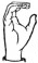 На ћирилици написано АЛЕКСА ОЛУЈИЋ састоји се из 12 слова [?]. Исписано ћириличном једноручном азбуком за глувонеме: